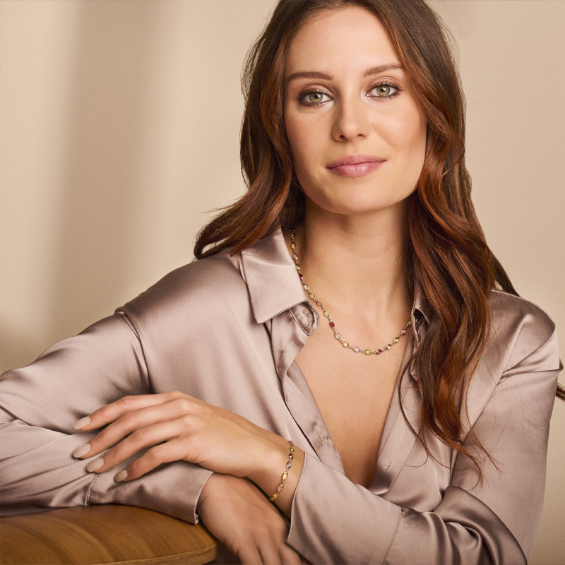 14-karaat gouden armband met edelstenen - Lengte 18.5 cm
