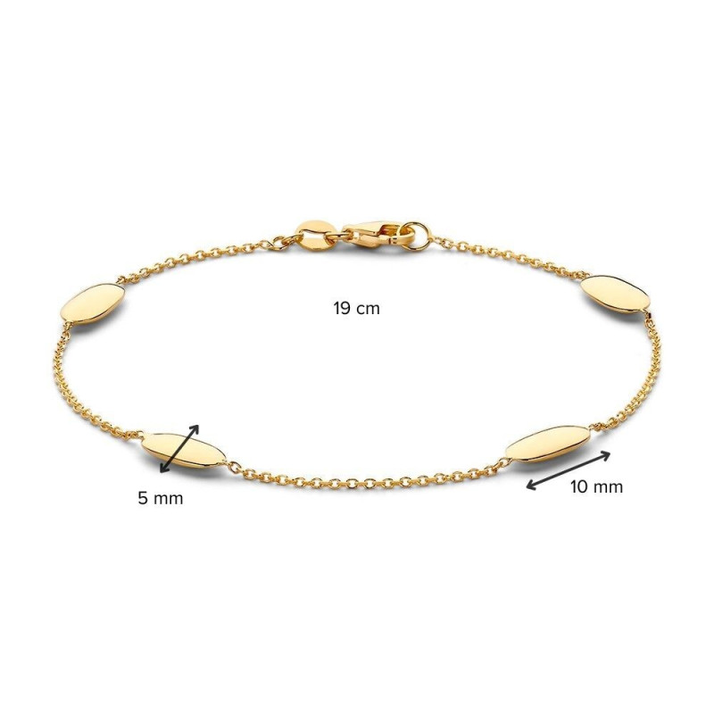 14-karaat gouden armband met vier dichte ovaaltjes van 10x5 mm - Lengte 19 cm