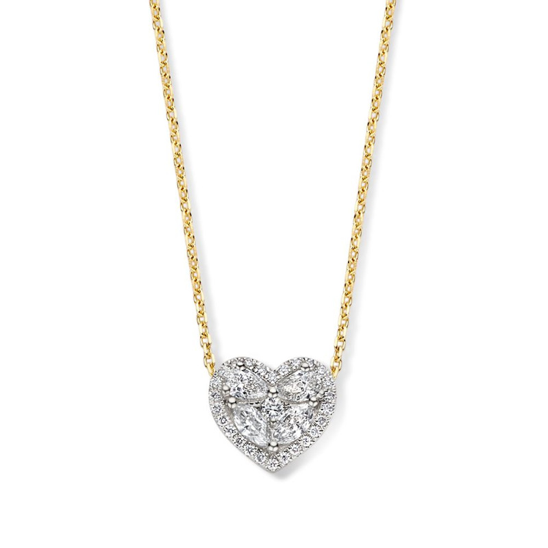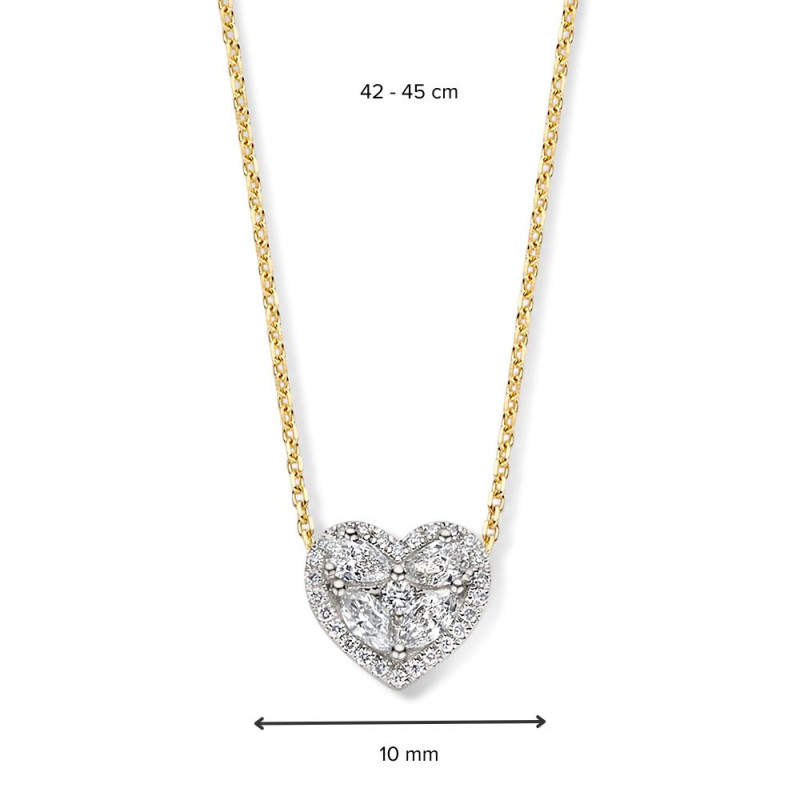 14-karaat gouden hartjes ketting met diamanten - Lengte 42-45 cm