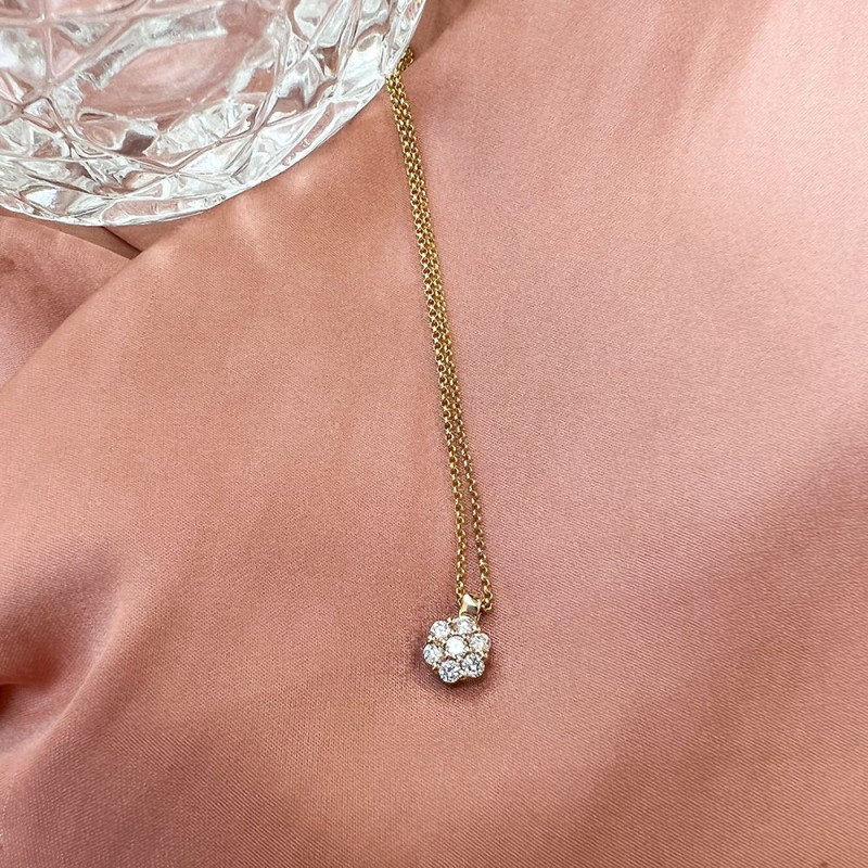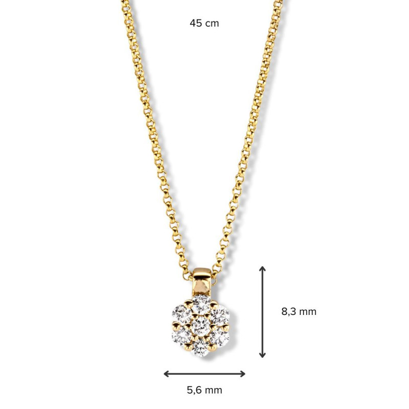 14-karaat gouden ketting met diamanten bloem hanger - Lengte 45 cm