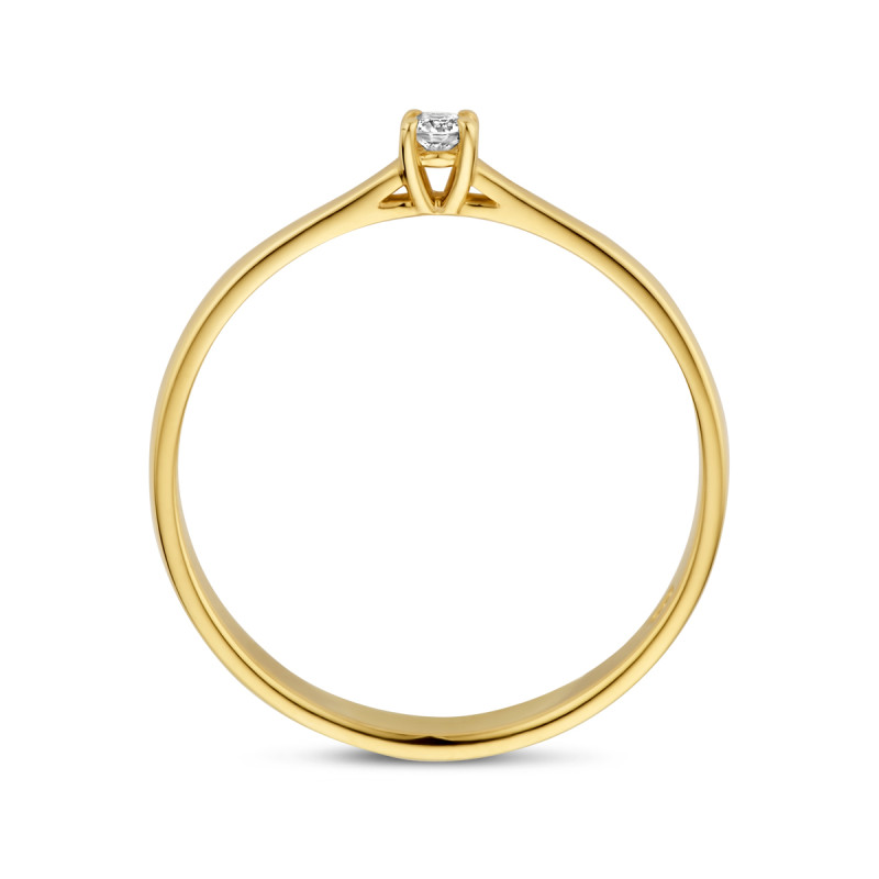 De 14-karaat gouden ring is voorzien van een briljant geslepen diamant die 0.05 karaat weegt. Deze ring is een toevoeging aan iedere sieradencollectie, met een ontwerp dat tijdloos kan worden genoemd.