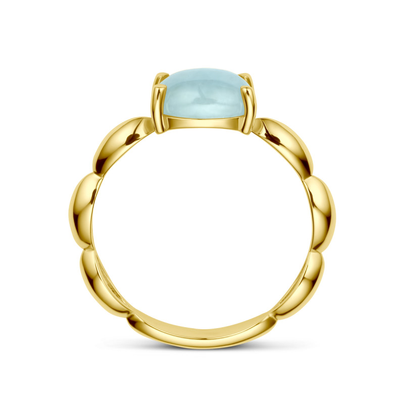 14-karaat gouden ring met ovale blauwe aquamarijn