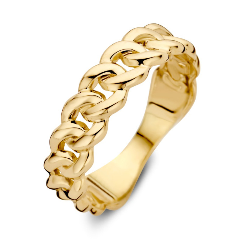 Voeg een twist toe aan je outfit met deze prachtige 14-karaat gouden schakelring. Met een breedte van 5.3 mm en zes verschillende ringmaten is dit sieraad speciaal ontworpen voor dames die houden van een subtiele maar toch opvallende uitstraling. De ring is vervaardigd uit hoogwaardig 14-karaat goud, wat zorgt voor een warme en luxueuze uitstraling. De glanzende afwerking voegt een extra vleugje elegantie toe, waardoor de ring een schitterende aanvulling is op elke sieradencollectie.