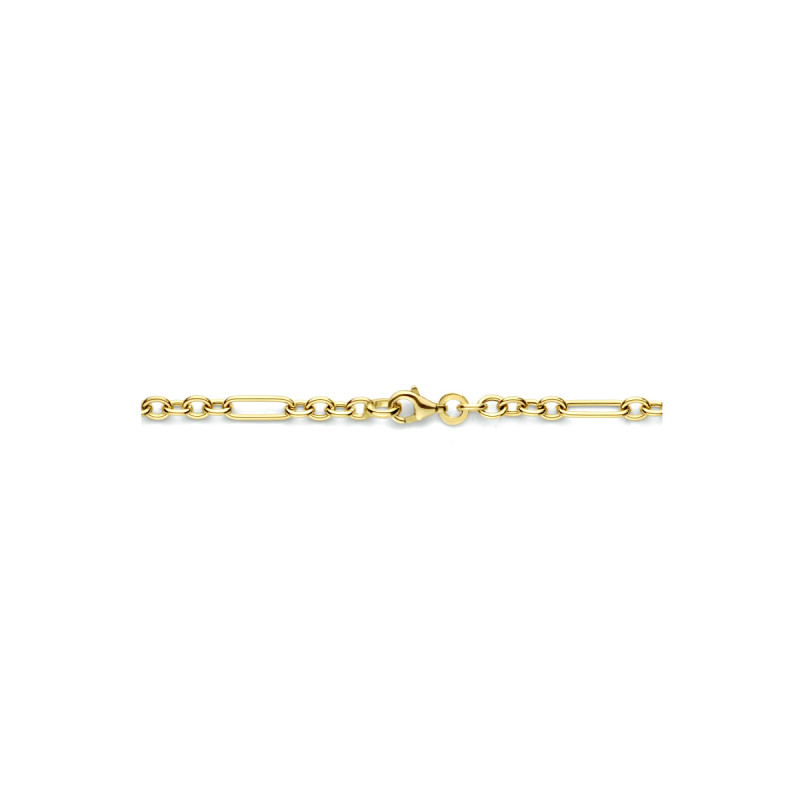 Deze prachtige gouden anker ketting heeft een echte unieke look. De schakels zijn verweven met een aantal kleine en lange ankerschakels, waardoor de schakels van deze ketting een unieke combinatie vormen. Zo is deze gouden anker ketting een echte blikvanger! Het collier kan gedragen worden op een lengte van 42 cm, waardoor hij mooi kort valt. Het goud heeft een 14-karaat gehalte, zodat de ketting niet alleen erg mooi maar ook erg duurzaam is. Levering inclusief sieradendoosje. Sluiting door middel van een stevig gouden karabijnslot.