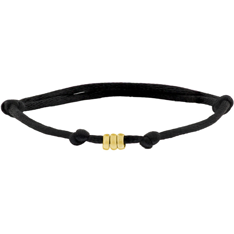 Deze armband is een prachtige combinatie van de twee materialen satijn en 14-karaat goud. Het bandje is gemaakt van zwart gevlochten satijn, terwijl de ringetjes van 14-karaat goud zijn. Zo is er een mooi contrast qua kleur en heeft u een luxe maar toch sportieve stijl. De ringetjes hebben een grootte van 4.5 mm en de armband heeft een draaglengte van 17 cm tot en met 30 cm (verstelbaar). Levering inclusief sieradendoosje.