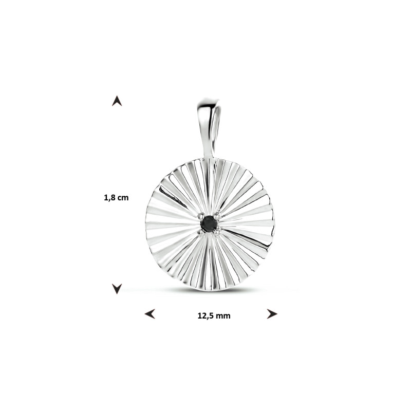Bewerkte zilveren hanger met zwarte zirkonia - Diameter 12.5 mm