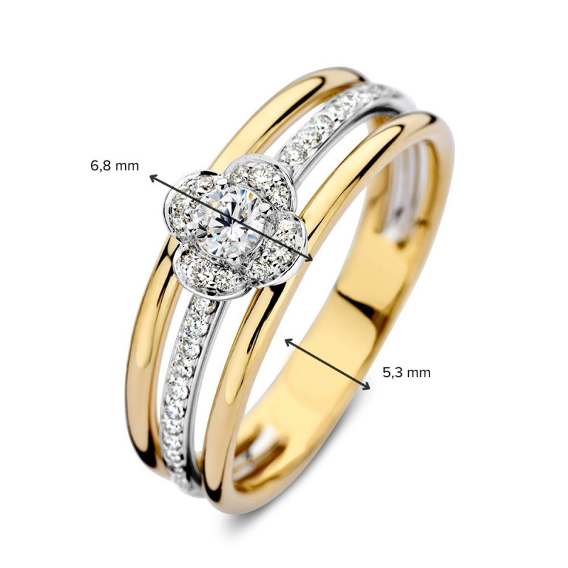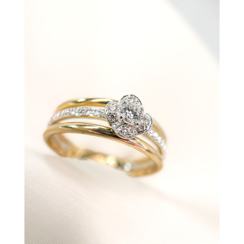Bloemen ring van goud met witgouden diamanten baan 0.28 crt