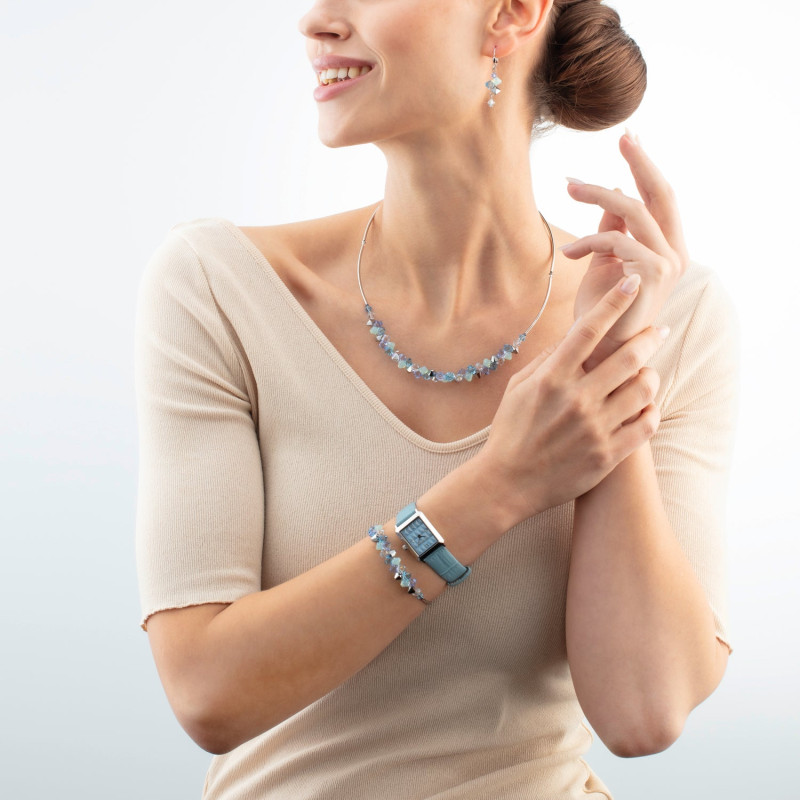 Coeur de Lion Dancing Crystals 2038/10-0737 ketting van staal en blauwe Swarovski kristallen - Lengte 42-48 cm