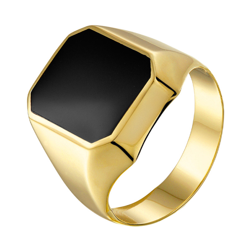 Deze elegante ring met onyxsteen is gemaakt van echt 14-karaats goud. De sierlijke geslepen hoeken van de onyx geven de ring een elegante uitstraling. Over de prachtige diepzwarte kleur nog niet gesproken! De maat van de steen is circa 15 mm. De ring is in verschillende maten verkrijgbaar. Verras uw zoon vriend of man. Hij zal zeker versteld staan!