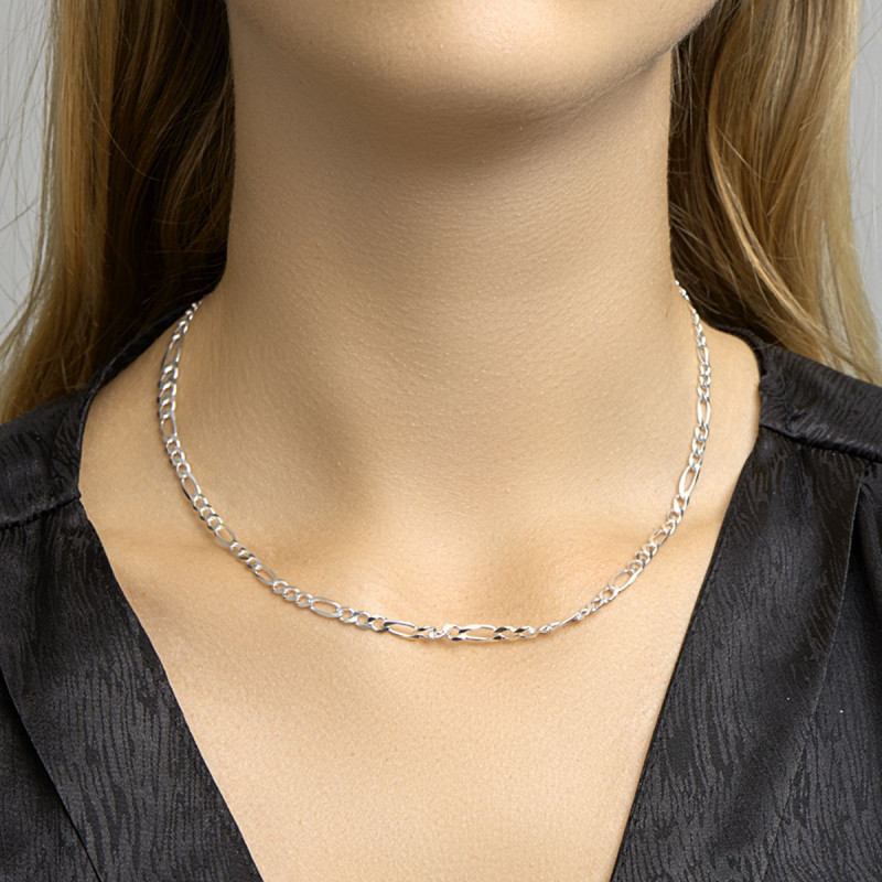 Op zoek naar een subtiele schakelketting? Dan is de figaro ketting echt iets voor u! Deze figaro ketting is gemaakt van hoogwaardig 925 zilver. Een figaro ketting heeft dezelfde schakels als een gourmet ketting. Echter zit er tussen de één tot vijf schakels een langere schakel. De figaro ketting is 4.0 mm breed en verkrijgbaar in diverse lengtes. Leuk om los te dragen of om te combineren met uw andere zilveren kettingen. Levering inclusief sieradendoosje.