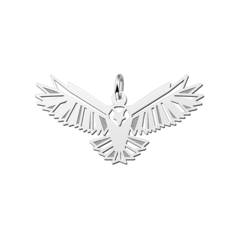 Als een van de stoerste hangers uit ons assortiment is deze zilveren geometrische hanger in de vorm van een adelaar een echte eyecatcher! Door de wijd gesprijde vleugels ziet de adelaar er erg krachtig uit. De scherpe vormen maken het stoere geheel helemaal af. De verschillende vlakken zilver geven de hanger een prachtige moderne en hippe uitstraling. In veel culturen staat de adelaar als sterke roofvogel symbool voor kracht en onafhankelijkheid. Zo heeft deze hanger een prachtige betekenis, en ziet hij er niet alleen stoer uit: hij is het ook!