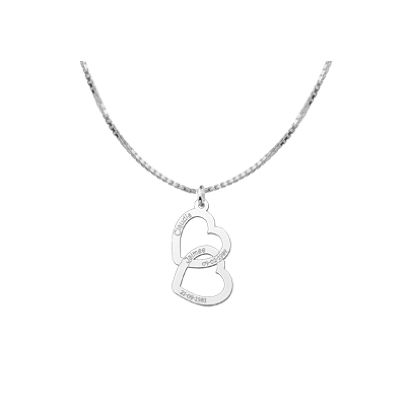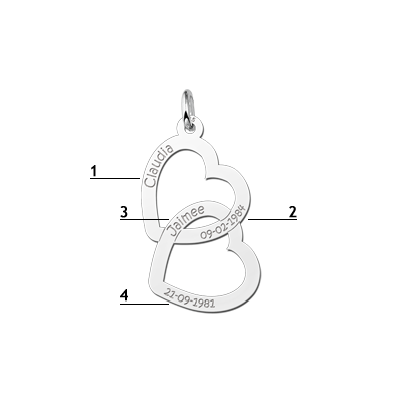 Names45ever gepersonaliseerde zilveren dubbele hart hanger
