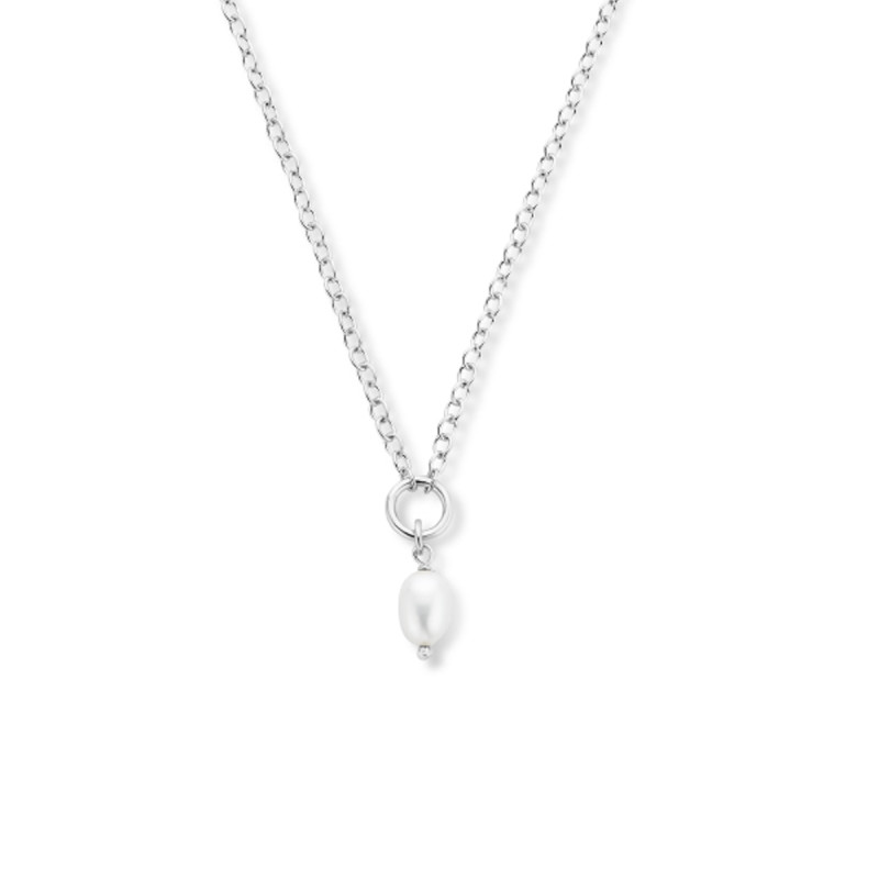 Gerhodineerde zilveren ketting met parel hanger 2.0 mm - 41 + 4 cm