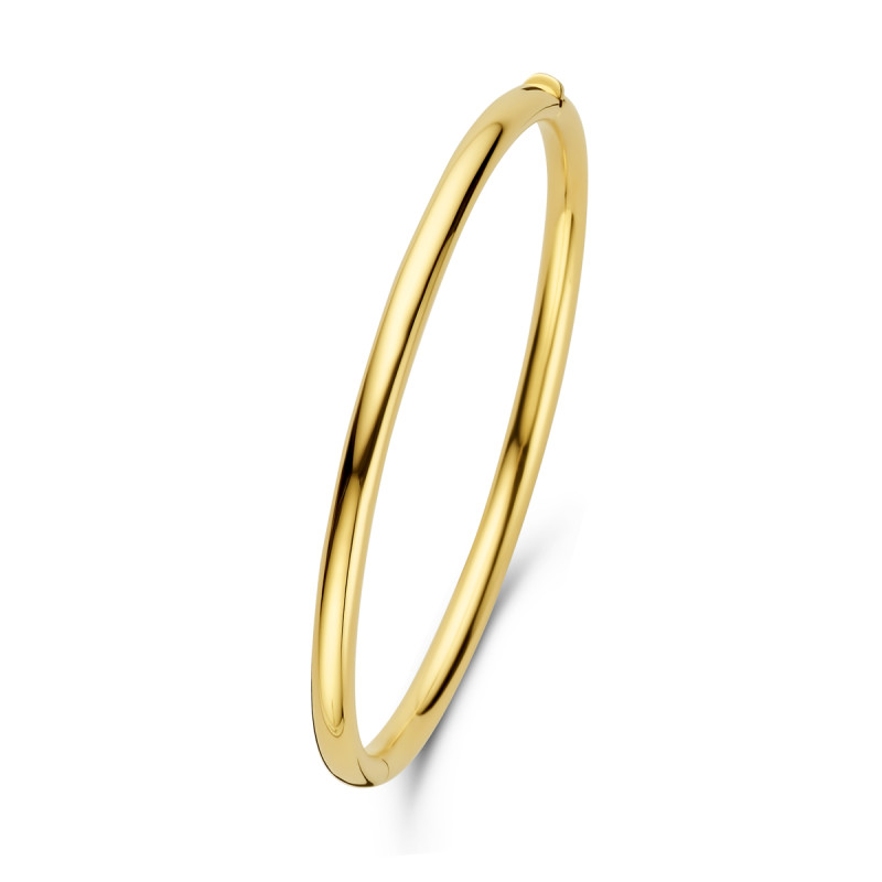 Glanzende gouden bangle met ronde buis van 4 mm breed - Diameter 60 mm