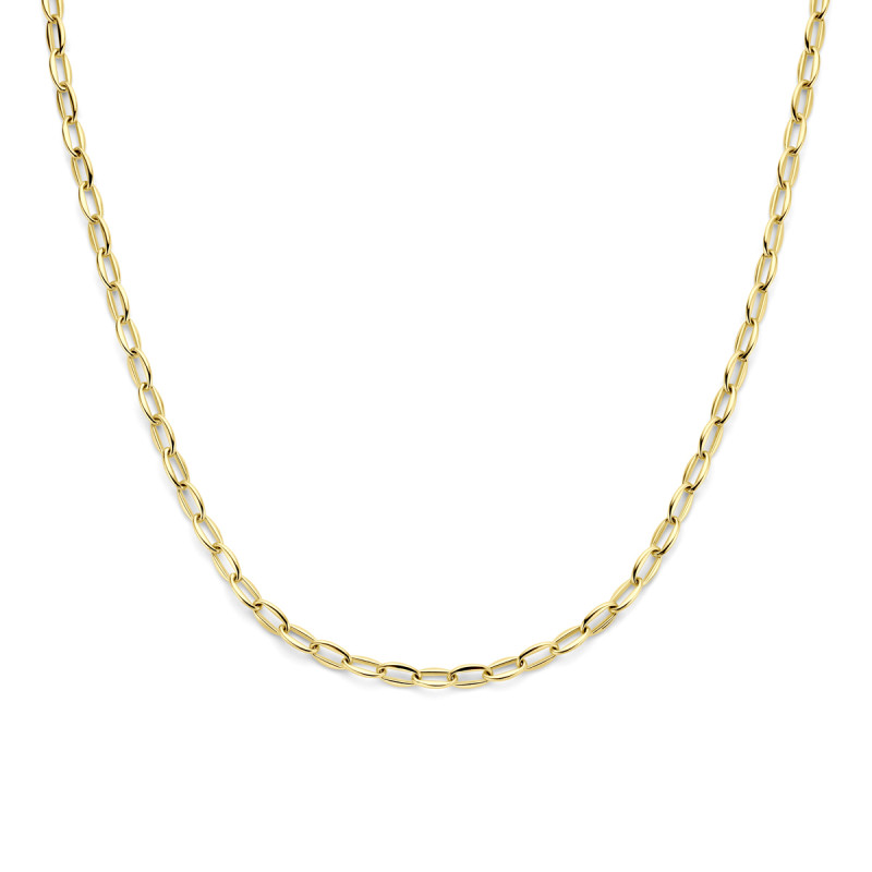 Deze schakelketting van goud is eenvoudig en klassiek.