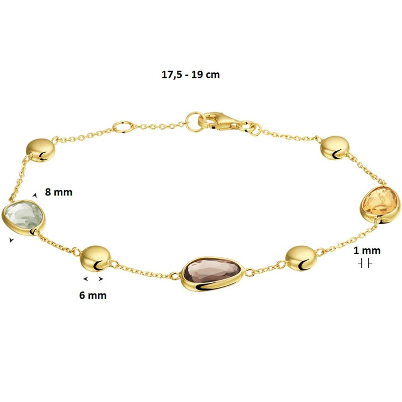 Elegant en stijlvol zijn twee kenmerken die heel goed passen bij deze edelstenen armband. De 14 krt gouden armband is uitgevoerd met een prachtige rookkwarts, citrien en amethist. De armband heeft een lengte van 17.5 cm of 19 cm (verstelbaar). De rookkwarts, citrien en amethist zorgt ervoor dat deze armband een echte must-have is. De edelsteen is briljant geslepen. De armband past perfect bij elke outfit en is een prachtige toevoeging aan uw sieradenset. De armband wordt geleverd in een mooi sieradendoosje.