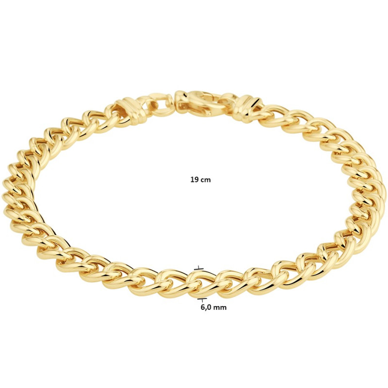 Deze gouden armband met schakels van wel 6 mm breed is een van de breedste en meest opvallende armbanden uit onze collectie. Zo is dit een prachtige armband om op zichzelf te dragen, als echte eyecatcher. De schakels zijn glanzend afgewerkt, zodat deze armband ook erg elegant is. Het goudgehalte is 14-karaat en de draaglengte van deze armband is 19 cm. Levering inclusief sieradendoosje. Een speciale geschenkverpakking is mogelijk.