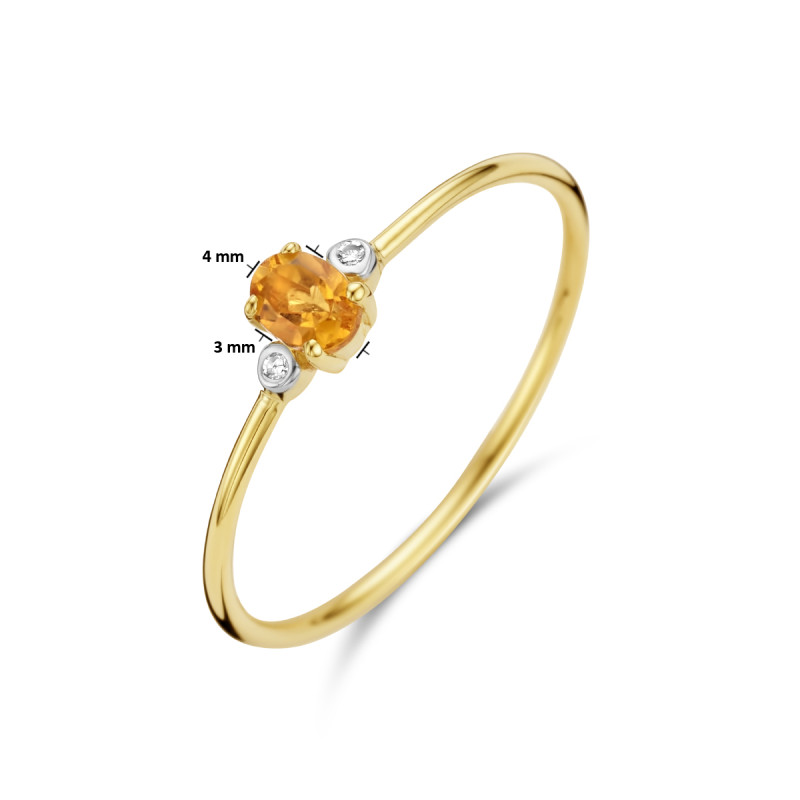 Gouden edelsteen ring met citrien 0.15 crt en diamant 0.006 crt