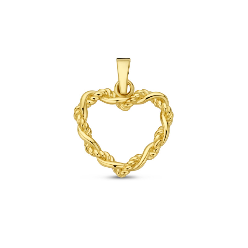 De hanger is gemaakt van 14-karaat goud, wat betekent dat hij niet alleen mooi is, maar ook van hoge kwaliteit. Het hartje is kunstig geweven, wat een unieke en verfijnde uitstraling geeft. De glanzende afwerking zorgt ervoor dat de hanger schittert in het licht en de aandacht trekt. Dit maakt het een ideaal cadeau voor jezelf of voor een geliefde.