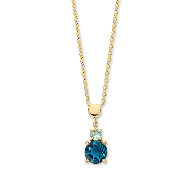 Gouden ketting met prachtige London blue topaas en topaas hanger - Lengte 45 cm