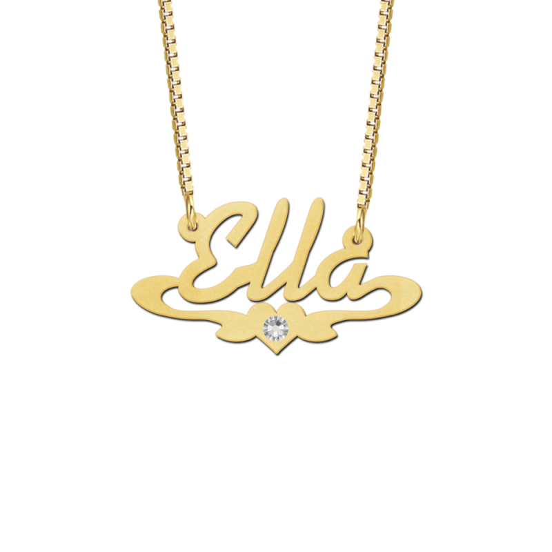 Deze gouden naamketting heeft een prachtig simpel, maar elegant lettertype. Het hartje met zirkonia zorgt ervoor dat de naam prachtig naar voren komt en de naamketting een elegante look heeft. De ketting met naam wordt met een gouden venetiaanse ketting van 42 cm geleverd. De breedte/dikte van de ketting is ongeveer 1.1 mm.