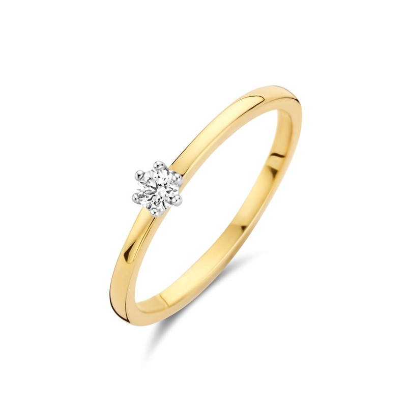 Op zoek naar een mooie klassieke ring? Dan is deze gouden ring met diamant zeker een goede keuze. De ring is klassiek solitair gezet en heeft een mooie gouden glanzende afwerking. Doordat de ring ook erg minimalistisch is is hij ook tegelijkertijd erg trendy. Deze gouden ring met diamant is verkrijgbaar in diverse maten van 16.50 mm tot en met 18.50 mm. Levering inclusief sieradendoosje.