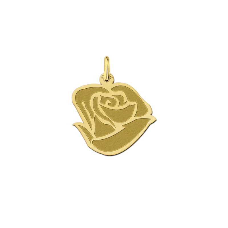 Prachtige vrouwelijke gouden hanger met het design van roos. De details in de gravering zorgen voor een elegante look. Deze gouden roos hanger is ca. 18 mm x 21 mm groot, en gemaakt van 14 karaats goud. De gouden hanger met roos kan ook besteld worden met bijpassende gouden ketting uit onze webshop. De gouden hanger is ook verkrijgbaar in zilver. "