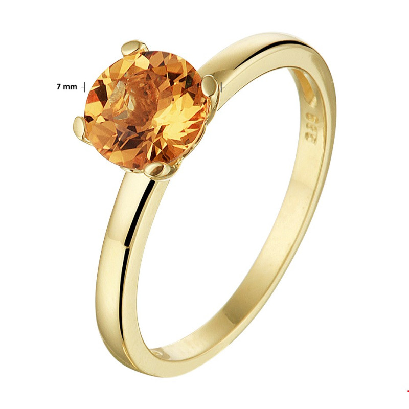 Voeg wat kleur toe aan uw sieradencollectie met deze mooie gouden edelsteen ring. Deze ring is ingezet met een mooie citrien en heeft een 14-karaat goudgehalte. De levering van deze ring gebeurt inclusief sieradendoosje en kan indien gewenst ook met een mooie geschenkverpakking. Zo is dit sieraad een prachtig cadeau dat zeker in de smaak zal vallen. De maatvoering van deze ring loopt van 16.50 mm t/m 18.50 mm.