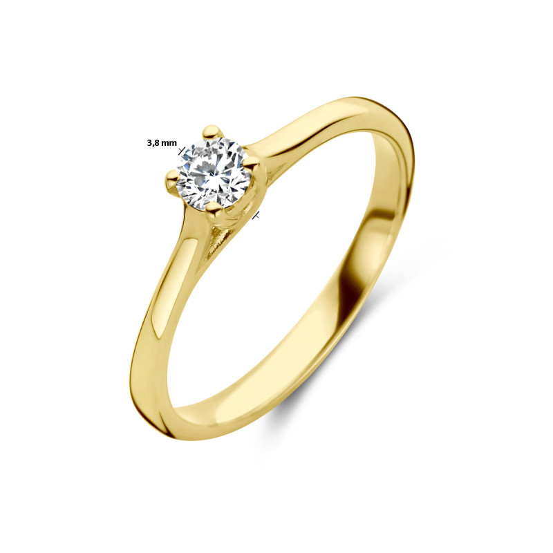 Gouden solitaire ring met diamant 0.20 crt 3.8 mm