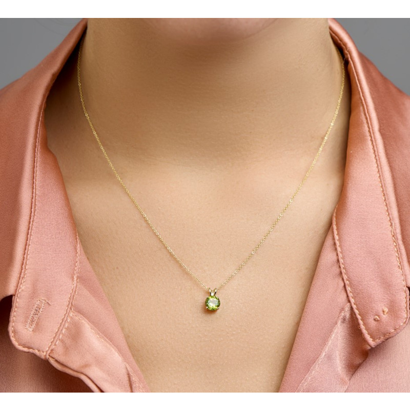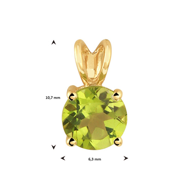 Stijlvol en modern zijn twee kenmerken die heel goed bij deze edelstenen hanger passen. De hanger is gemaakt van goud en bevat een prachtige peridoot. Doordat de hanger gemaakt is van 14 krt goud, gaat de hanger lang mee en blijft hij heel lang mooi. De peridoot zorgt ervoor dat deze hanger een echte must-have is die niet in uw sieradencollectie mag ontbreken! De edelsteen is briljant geslepen. Deze edelstenen hanger wordt geleverd exclusief collier. Zo kunt u zelf een collier uitzoeken die helemaal naar uw wens is! De hanger is een echte eyecatcher om uw hals! Levering inclusief mooie verpakking.