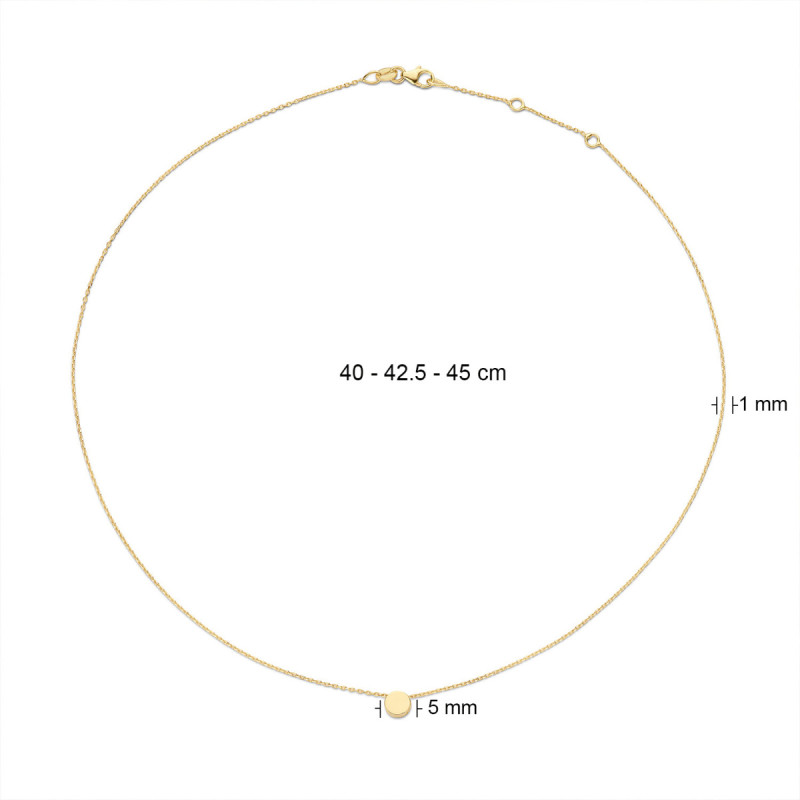 Jackie Gold Plain Circle JKN20.043 Ketting van 14-karaat goud met subtiel rond detail - Lengte 40-42.5-45 cm