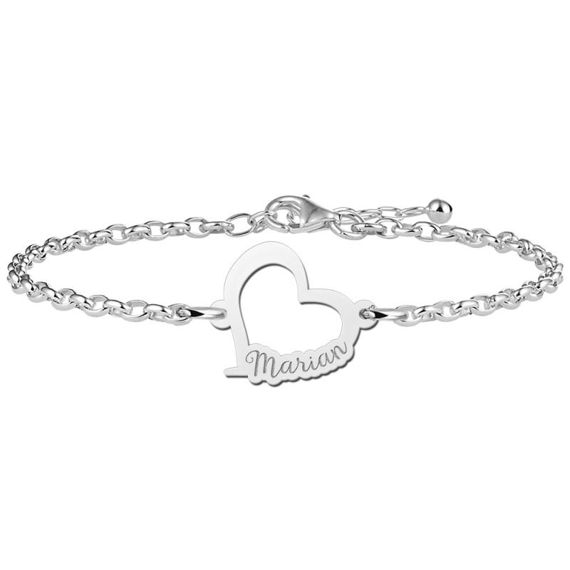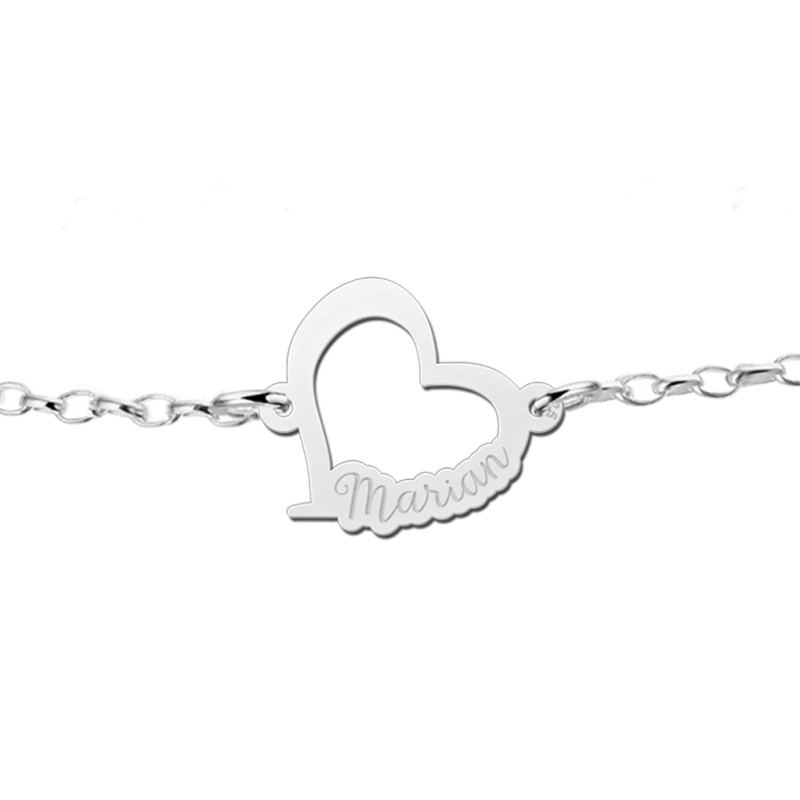 Names4ever zilveren hartjes armband met naam outlined