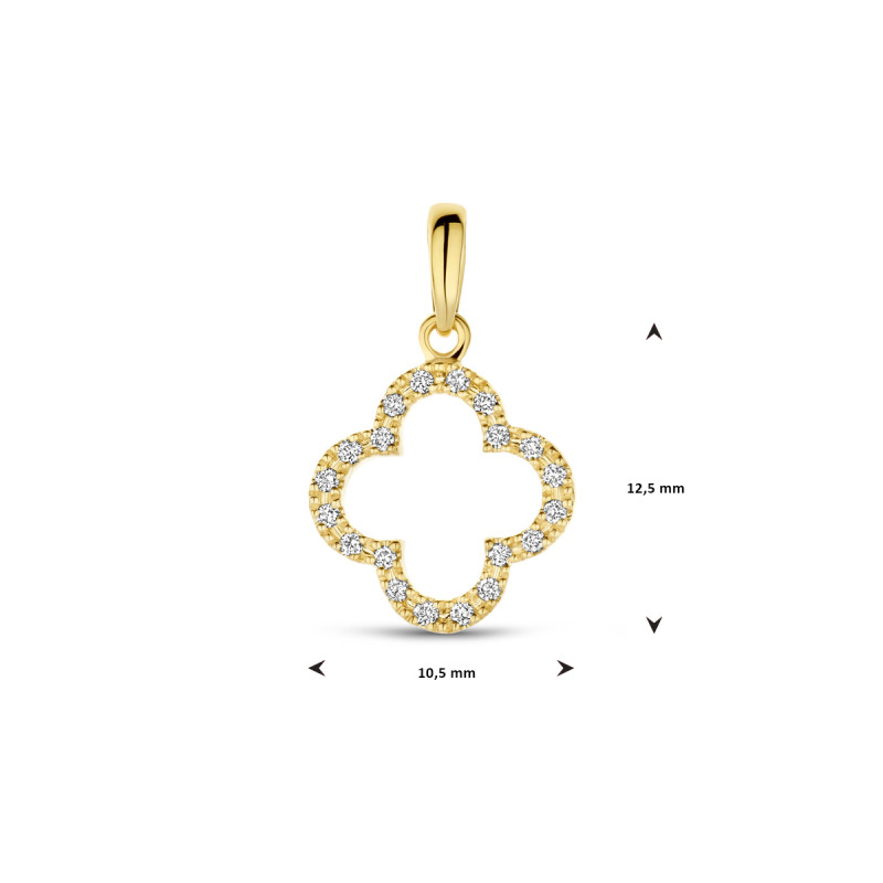 Opengewerkt klavertje vier hanger met diamant 0.07 crt - 10.5 mm x 17 mm