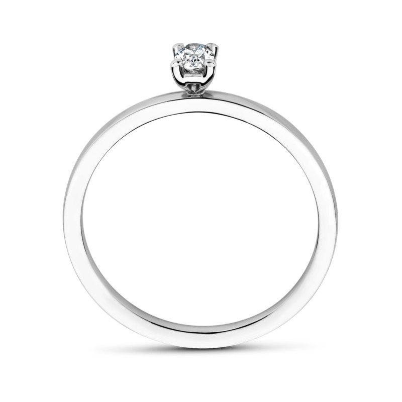 De ring is ingezet met prachtige diamant. De steenkleur is transparant perfect om veel verschillende outfits op te fleuren. De slijpvorm die hier gebruikt is (ovaal) is van de verschillende manieren waarop stenen geslepen kunnen worden bovendien één van de meest geliefde keuzes. Het diamantgewicht is in totaal 0.15 crt. De clarity (helderheid) is VS2. De colour (kleurgraad) is G.