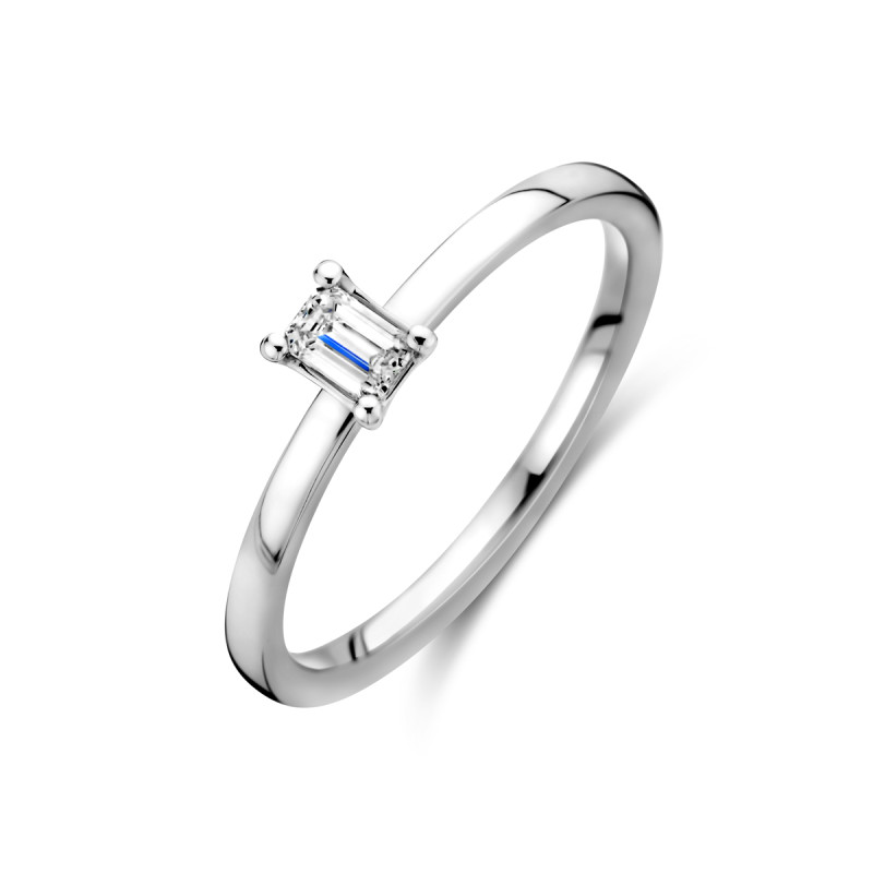 Platina solitaire ring met rechthoekige diamant 0.15 crt