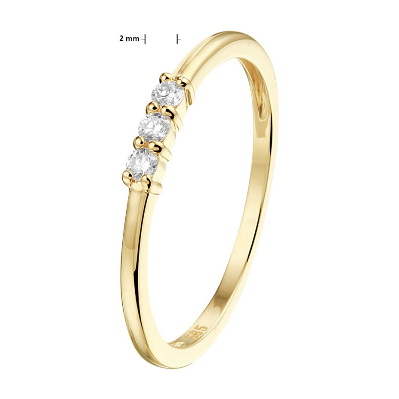 Een gouden diamanten ring is een prachtige toevoeging aan uw sieradencollectie! De ring is gemaakt van 14 krt goud een sterk materiaal dat lang mooi blijft. De ring is ingezet met een diamant van 0.09 crt. De ring is verkrijgbaar in diverse maten. De breedte van de ring is 2 mm. De ring is elegant en stijlvol tegelijkertijd en levert gegarandeerd een grote glimlach op bij uw geliefde. De gouden diamanten ring wordt geleverd inclusief sieradendoosje. Een geschenkverpakking is indien gewenst mogelijk.