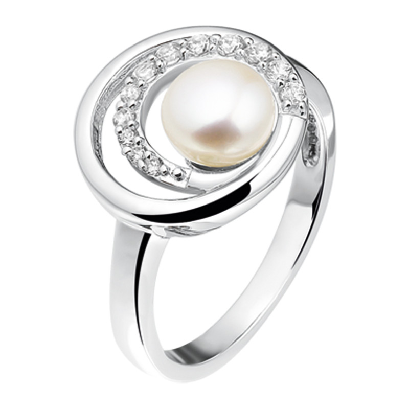 Ring met parel en zirkonia van zilver