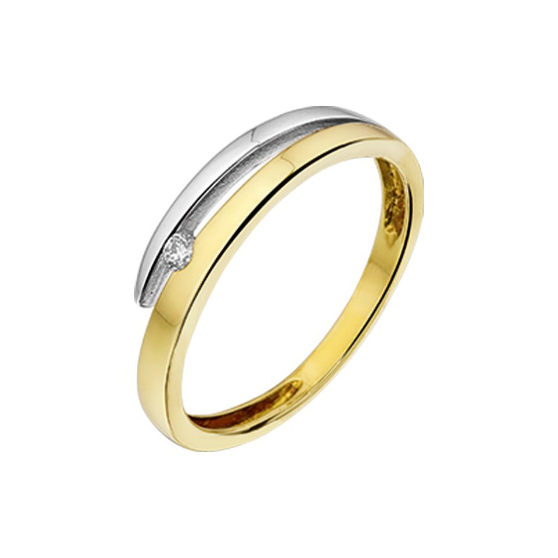 Een diamanten ring is helemaal trendy op dit moment! Deze mooie ring is ingezet met diamanten van 0.035 crt en is gemaakt van 14 krt bicolor goud. De ring is perfect te combineren met andere sieraden uit uw sieradencollectie. De breedte van de ring is 4.5 mm. Verkrijgbaar in diverse maten. Deze stijlvolle ring met diamanten levert gegarandeerd veel complimentjes op! De ring wordt geleverd in een luxe sieradendoosje.