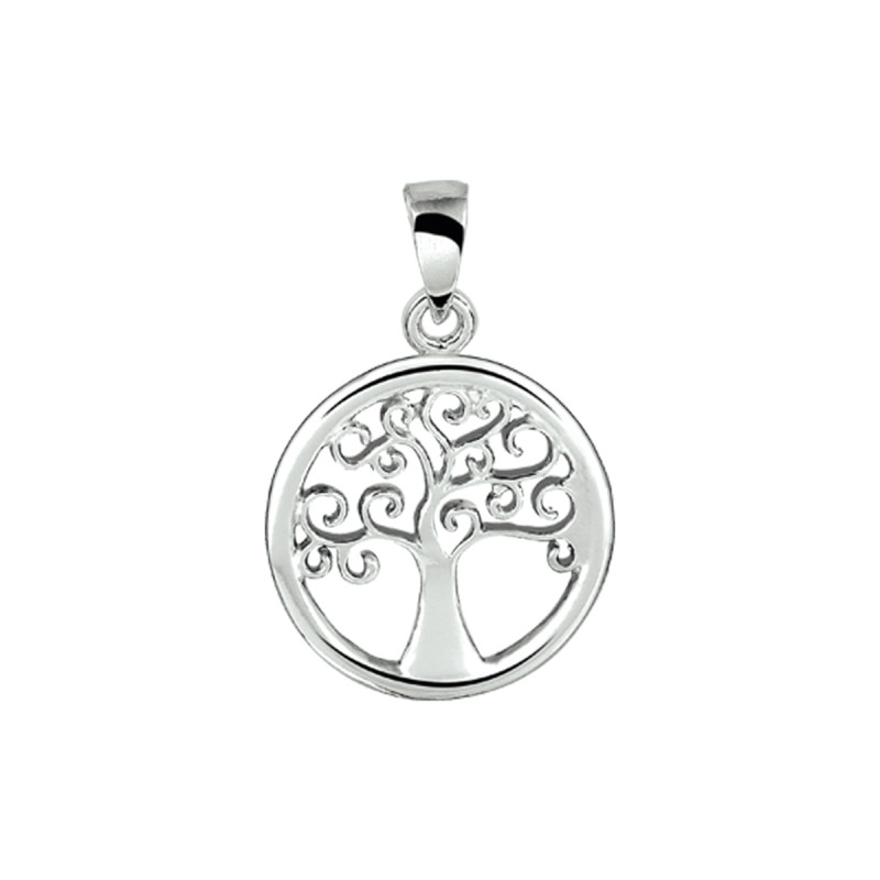 Ronde levensboom hanger zilver - Diameter 15.5 mm