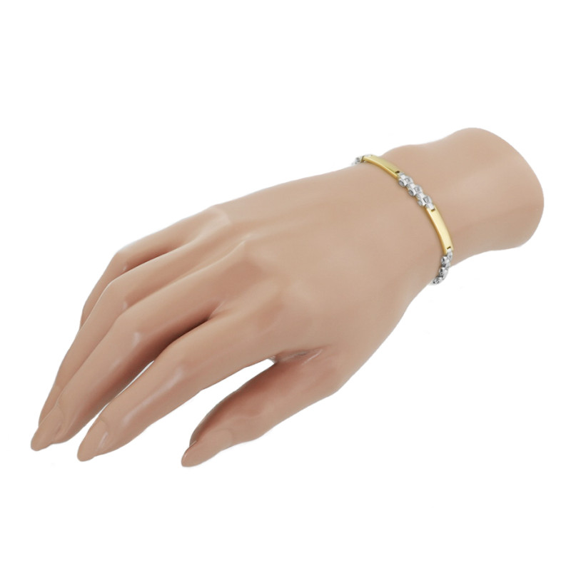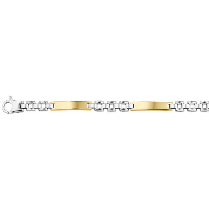 Deze armband is gemaakt van 14-karaats geelgoud en witgoud. De stevige karabijnsluiting zorgt ervoor dat de armband goed om uw pols blijft zitten. De armband heeft een lengte van 19 cm en een breedte van 4 mm.