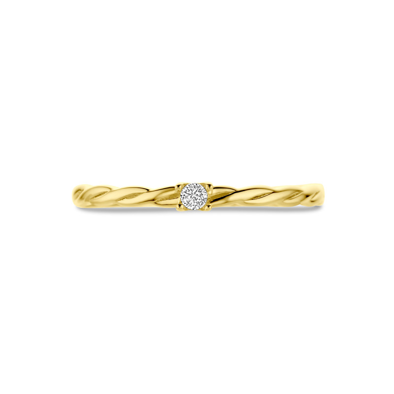 Smalle gedraaide gouden ring met zirkonia 2 mm breed