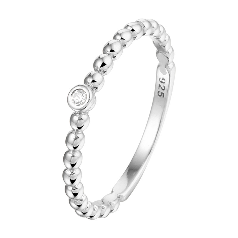Stijlvolle gerhodineerd 925 zilveren aanschuifring uitgevoerd met bolletjes en een prachtige zirkonia steen. Door het laagje rhodineer is de ring beschermt tegen oxidatie en krassen. De ring is beschikbar in diverse maten en heeft een breedte van 2.5 mm. Combineer de ring met andere (aanschuif)ringen. Deze leuke ring wordt geleverd in een luxe sieradendoosje.