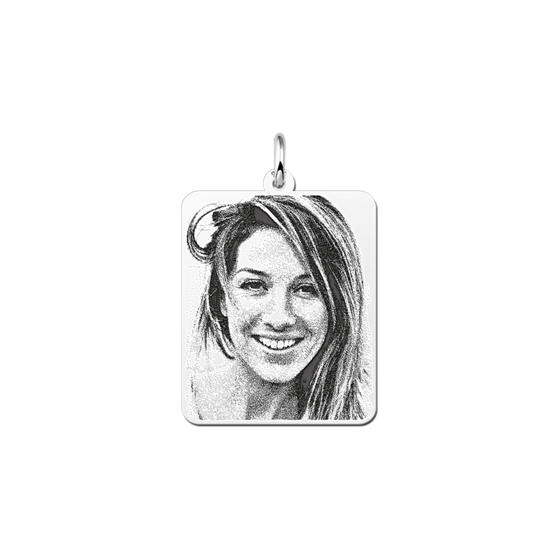 Deze prachtige zilveren foto hanger is rechthoekig van vorm en gemaakt van 925 sterling zilver. De foto hanger heeft een afmeting van 22 bij 26.5 mm en heeft een dikte van 0.7 mm. De rechthoekige vorm geeft deze hanger een stijlvol en strakke look. Deze hanger met foto gravure kunt u indien gewenst inclusief ketting kiezen. Wij zorgen ervoor dat de foto op een mooie manier op de zilveren hanger gegraveerd wordt. Eventueel is het hangertje ook beschikbaar in 14 karaats goud. Bekijk daarnaast ook eens de overige beschikbare foto hangers zoals de ronde, hartvormige, vierkante of ovale foto hangers.
