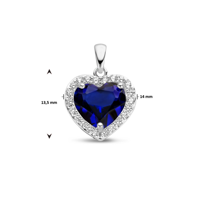 Zilveren hartjes hanger met synthetische saffier en zirkonia's - 14 mm x 13.5 mm
