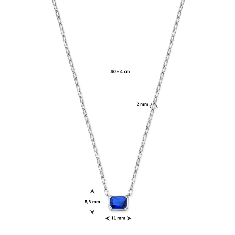 Zilveren ketting met rechthoekige blauwe zirkonia - Lengte 40-44 cm