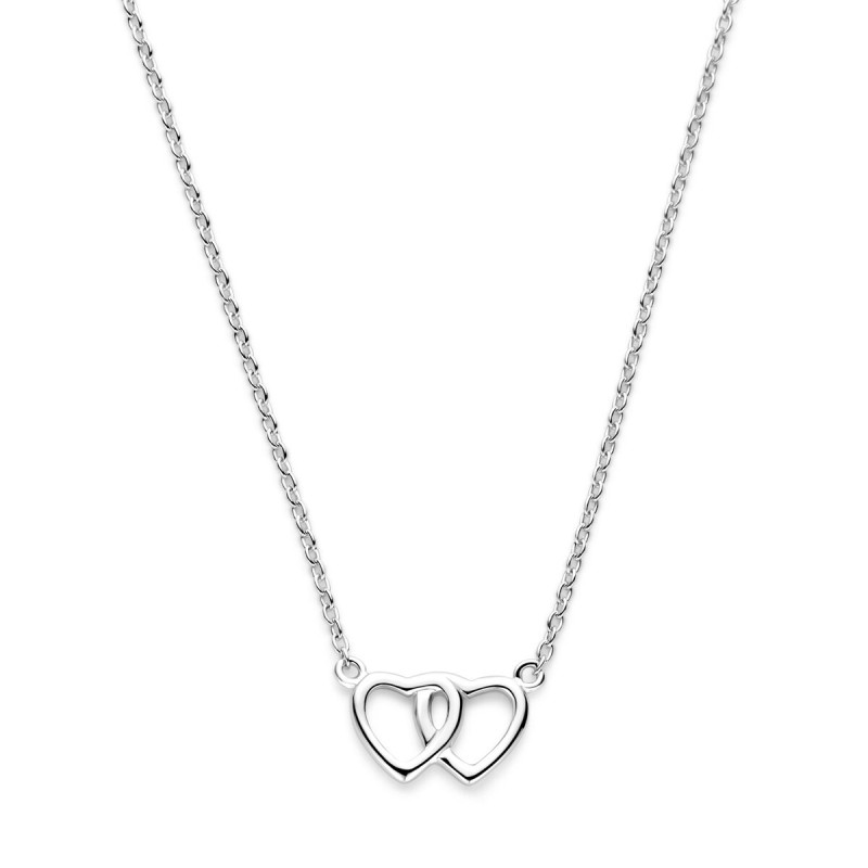 Prachtige zilveren ketting met twee zilveren hartjes. De ketting is circa 1.5 mm dik en kan gedragen worden op een lengte van 41 of 45 cm. Zowel de hanger als de ketting zijn gemaakt van het hoogste gehalte zilver: 925 Sterling. Een prachtig minimalistisch sieraad voor elk moment en een prachtig cadeau voor die ene speciale persoon.