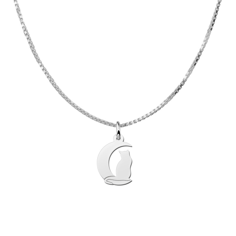 Zilveren hanger met een zittende kat op de maan. Bent u een echte kattenliefhebber en wilt u uw kat altijd met u mee dragen? Dan is deze hanger echt iets voor u. Deze hanger kunt u aan een ketting dragen. maar de hanger is ook een mooi formaat voor een bedel aan uw armband. De hanger heeft een breedte van circa 12 mm en een hoogte van 15 mm. De hanger is gemaakt van 925 sterling zilver.