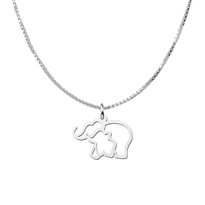 Zilveren olifanten hanger. In deze hanger ziet u een moeder olifant met haar baby olifantje. Bent of kent u iemand die helemaal dol is op olifantjes? Dan is dit de perfecte hanger voor u of om cadeau te doen. De hanger heeft een hoogte van circa 16 mm, een breedte v an 24 mm en is gemaakt van 925 sterling zilver.