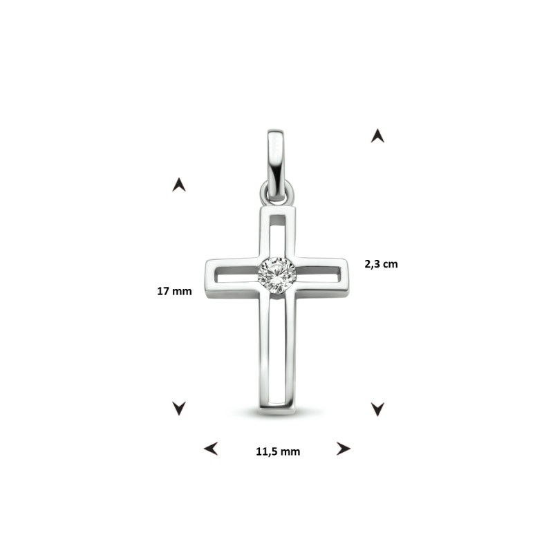 Deze zilveren hanger in de vorm van een kruisje is niet alleen prachtig om te zien maar heeft natuurlijk ook een mooie betekenis. De hanger is uitgevoerd met een briljant geslepen zirkonia. Dat de hanger opengewerkt is, maakt hem extra bijzonder! Bovendien is deze hanger gemaakt van 925 sterling zilver en is die gerhodineerd. De hanger heeft (inclusief oogje) een hoogte van 23 mm en zonder oogje een hoogte van circa 17 mm. De breedte van de hanger is 11.5 mm. Levering is inclusief sieradendoosje en indien gewenst is er ook een speciale geschenkverpakking mogelijk.