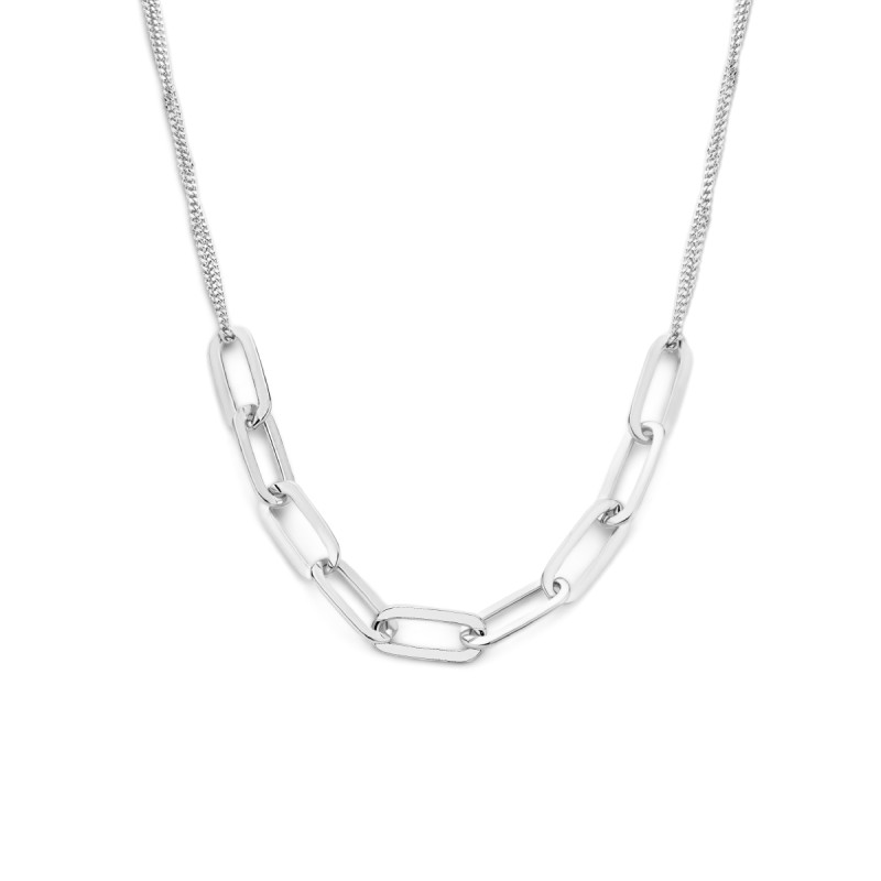 Mooi zilveren paperclipcollier met een combinatie met paperclipschakels en gourmetschakels. Een prachtig stoer maar toch sierlijk collier, dat maar liefst 7 mm breed is. De gourmetschakels is circa 1.4 mm breed. Deze ketting is gemaakt van echt 925 zilver (gerhodineerd) en wordt inclusief sieradendoosje geleverd.